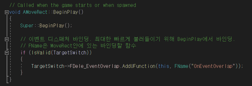 해당 클래스의 BeginPlay에서 이벤트 디스패처를 바인딩해 주면 실행된다.